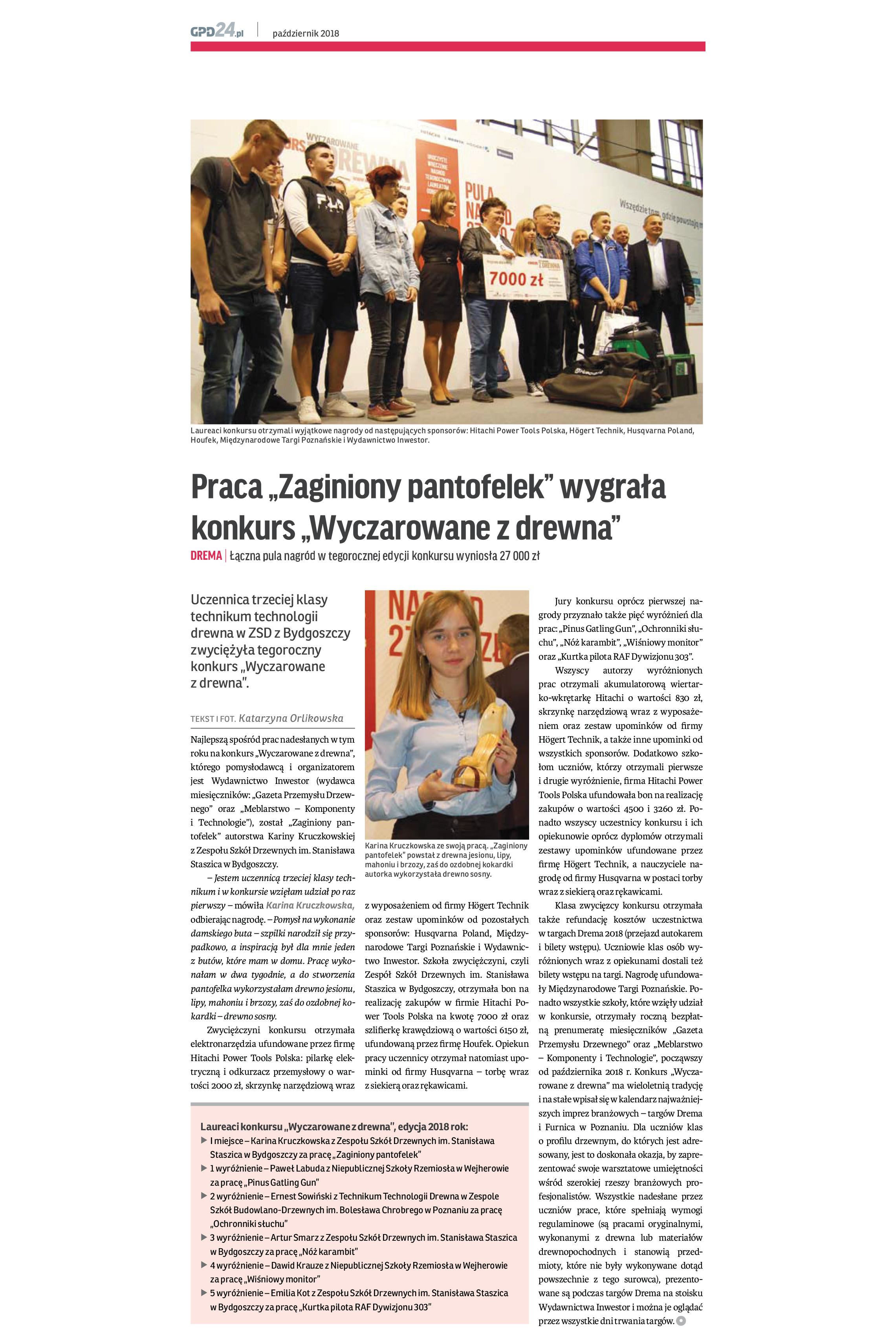 V říjnu 2018 se v Polsku uskutečnila soutěž „Wyczarowane z Drewna“, jako sponzoři jsme tam nesměli chybět. Úlohou studentů bylo vytvořit výrobek ze dřeva.
