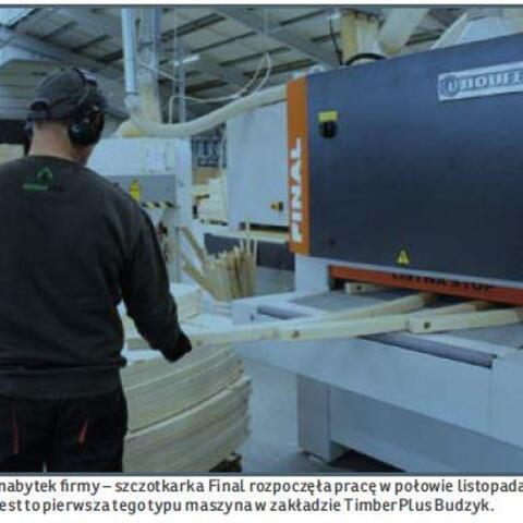 Od chvíle ukončení stavby nové výrobní haly společnost TimberPlus Budzyk neustále investuje do nových zařízení. Má několik důvodů pro nákup dalších strojů, mj. navýšení výrobní kapacity a zlepšení kvality zpracování produktů.